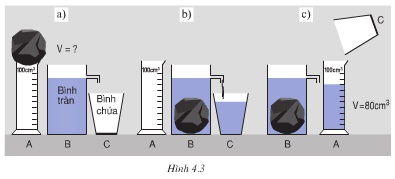 + Thả chìm vật vào bình tràn. Chờ nước đổ ra chảy hết vào bình chứa.