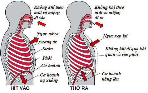 Sự thông khí ở phổi nhờ cử động hô hấp hít vào và thở ra nhịp nhàng làm thay đổi thể tích lòng ngực, giúp cho không khí trong phổi luân được đổi mới.