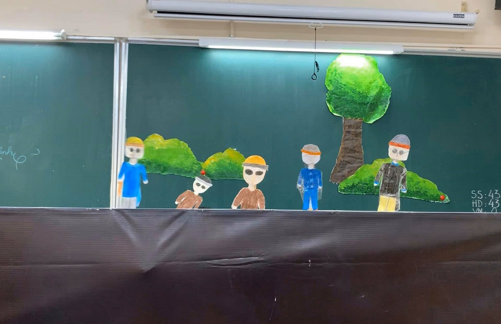 Nghệ thuật múa rối dân gian Việt Nam đã được hình thành từ bao đời nay, được lưu truyền tồn tại và ngày càng phát triển với nhiều thể loại như: Rối tay, rối que, rối dây, rối mặt nạ, rối diều sáo, rối đồ chơi, múa rối nước... Môn Mĩ thuật lớp 6 đã thực hiện chuyên đề “Thiết kế hoạt cảnh” nhằm giới thiệu đến các em học sinh nghệ thuật dân gian này. Ở đây các em có dịp tìm hiểu và thể hiện về cảnh trí, trang phục, biểu cảm đặc trưng các nhân vật sao cho phù hợp với không gian, thời gian câu chuyện của nhóm mình đã chọn. Nội dung là những truyện dân gian trong chương trình Ngữ Văn 6, một lần nữa học sinh được thể hiện khả năng kể chuyện, lồng tiếng cho các nhân vật mà các em đã được học. Nhưng vui hơn hết các em được cùng nhau trải nghiệm những hoạt động với tiếng cười hồn nhiên, ngây ngô tuổi học trò.
