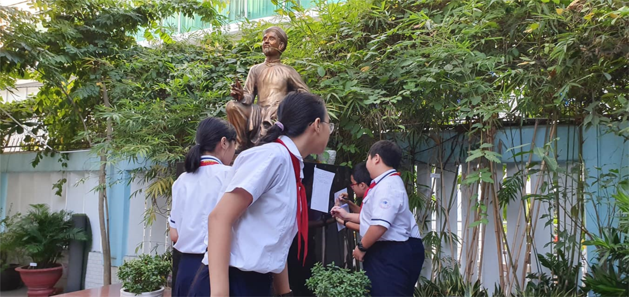 Tại trường THCS Nguyễn Du - Q1, khuôn viên và những góc nhỏ của trường được các thầy cô tận dụng để thiết kế tiết học trải nghiệm cho học sinh.